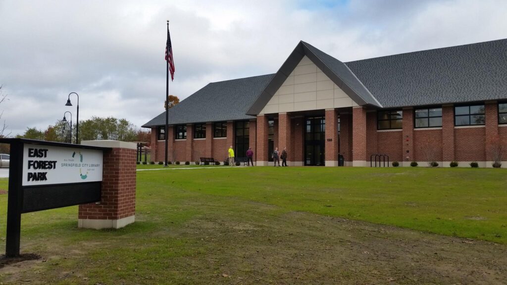 The new East Forest Park Branch Library addresses the neighborhood’s needs with quadruple the space for book and media collections, technology access, a large community room, dedicated space for teens, accommodations for adult learners, and a spacious children’s department. The Library is located next to the Mary A. Dryden Veterans Memorial School on Surrey Road, and nearby Pope Francis High School.